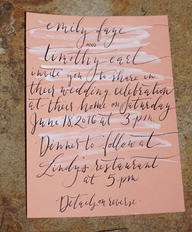 When their invitation arrived a few weeks before the wedding, I was wowed: Emily had painstakingly made each card. It must have taken hours to pen all the invitations, but the effect was stunning. How lovely to think that she would put such care into this milestone event.